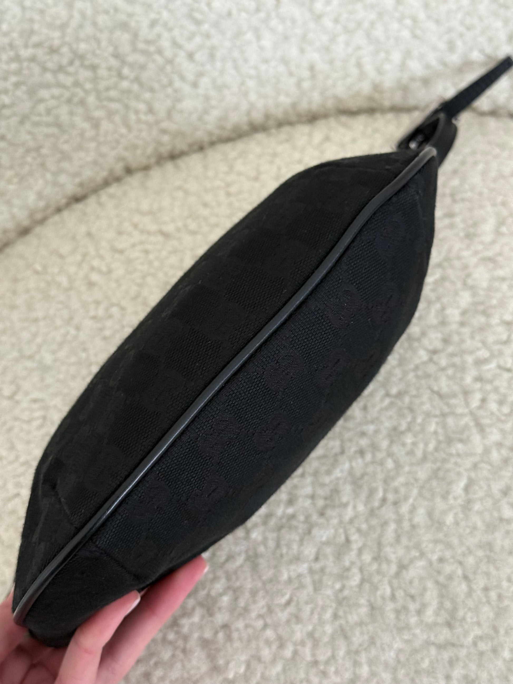 The interior is lined in black fabric and includes a leather Gucci logo patch with serial number. A classic archive-style piece that reflects Gucci’s early 2000s shoulder bag aesthetic and understated monogram branding.