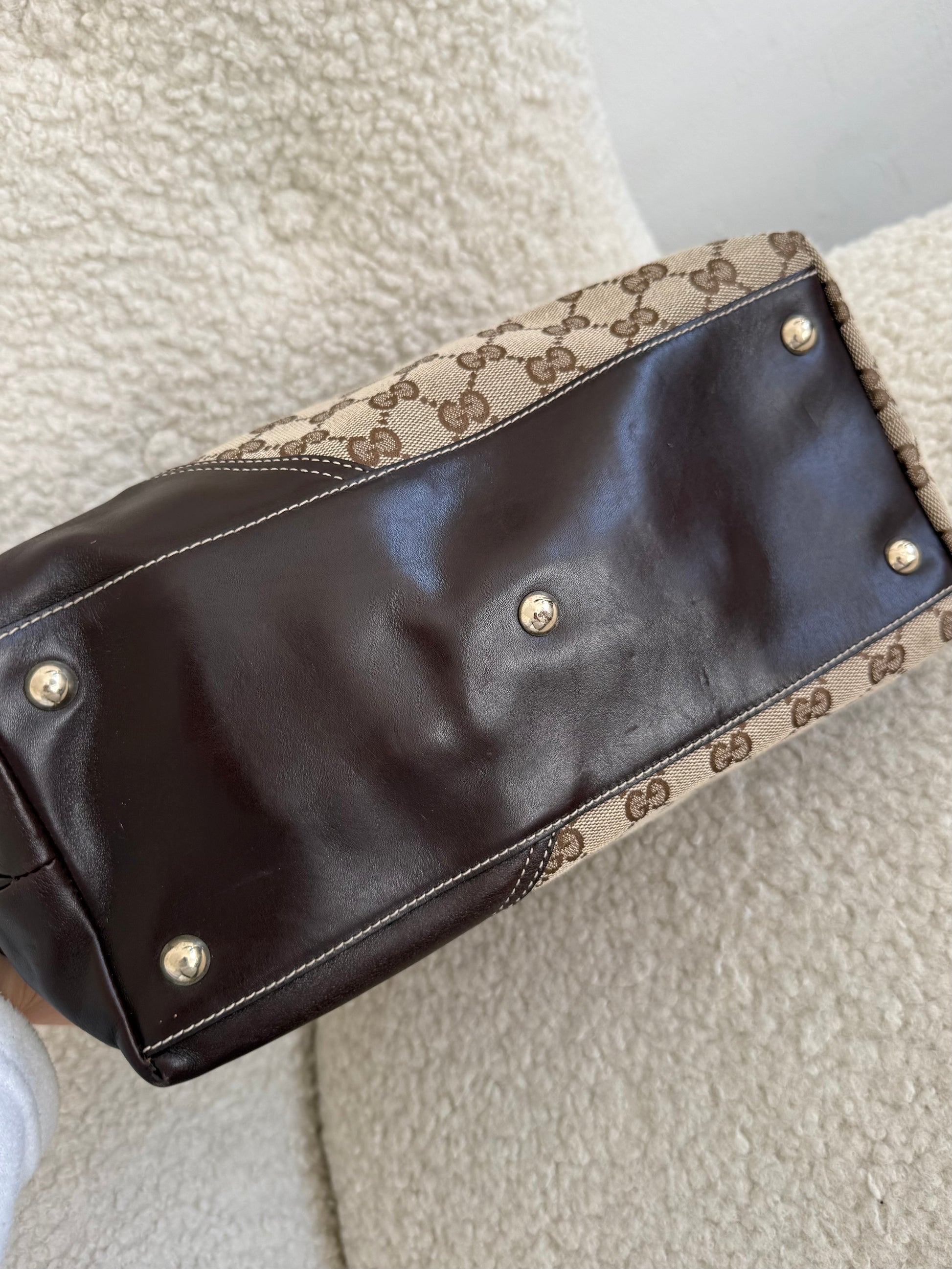gucci abbey tote, gucci d ring bag, gucci gg canvas, y2k gucci bag, vintage gucci tote, designer shoulder bag, monogram tote, brown