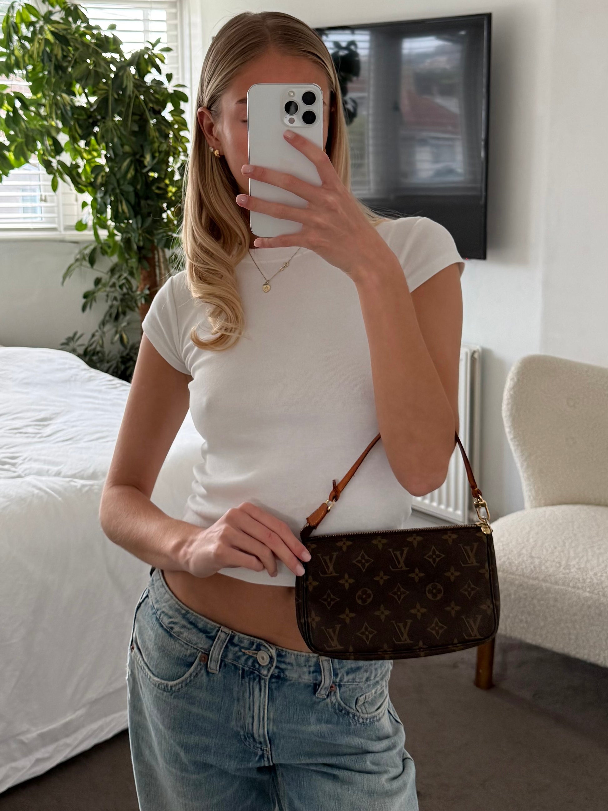 louis vuitton pochette, vintage lv bag, y2k louis vuitton, monogram shoulder bag, pochette accessoires, early 2000s designer, mini lv bag, archive Louis Vuitton