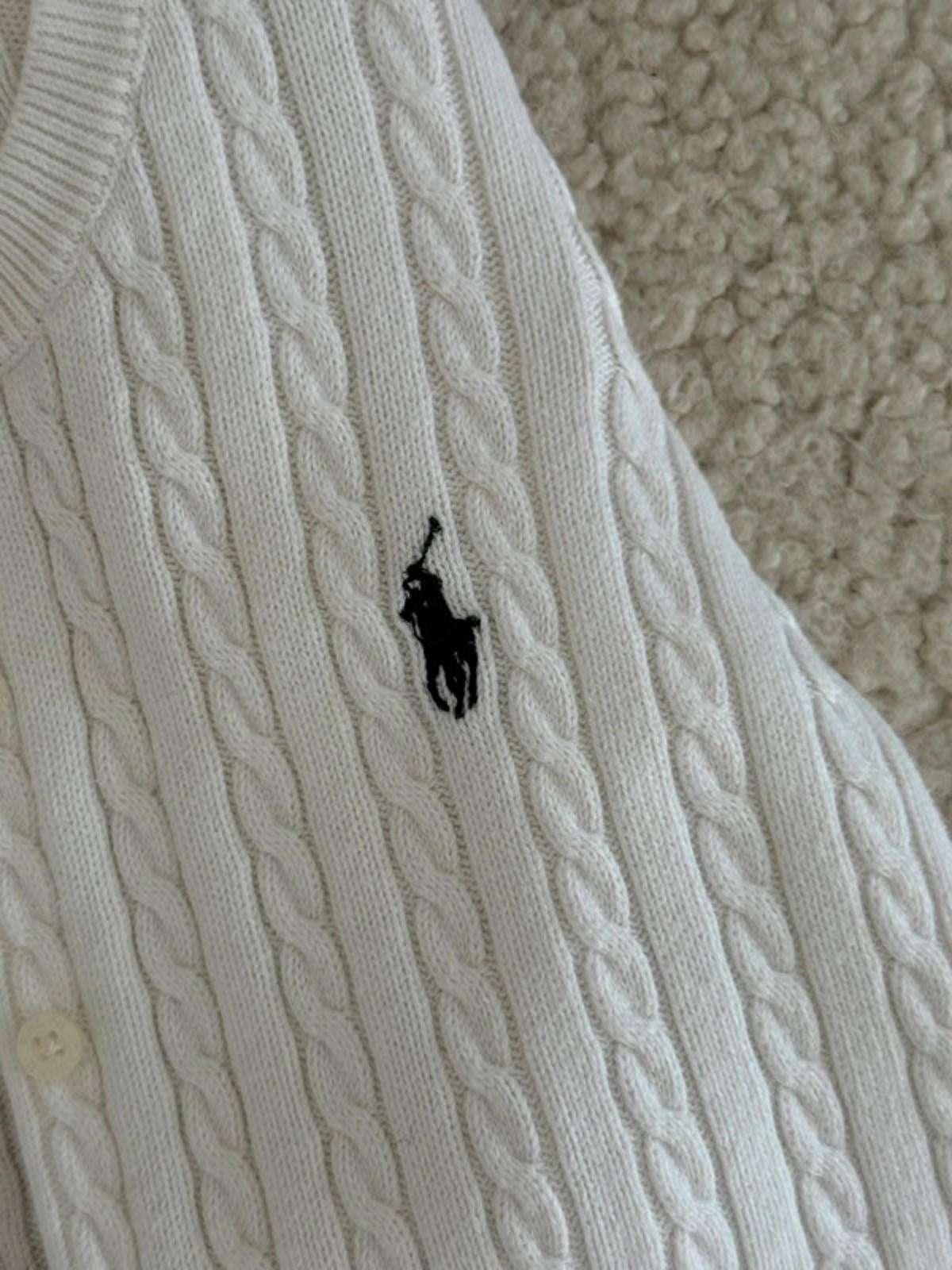 polo ralph lauren cable knit cardigan cropped knitwear white logo button up cotton knit minimal vintage preppy y2k
