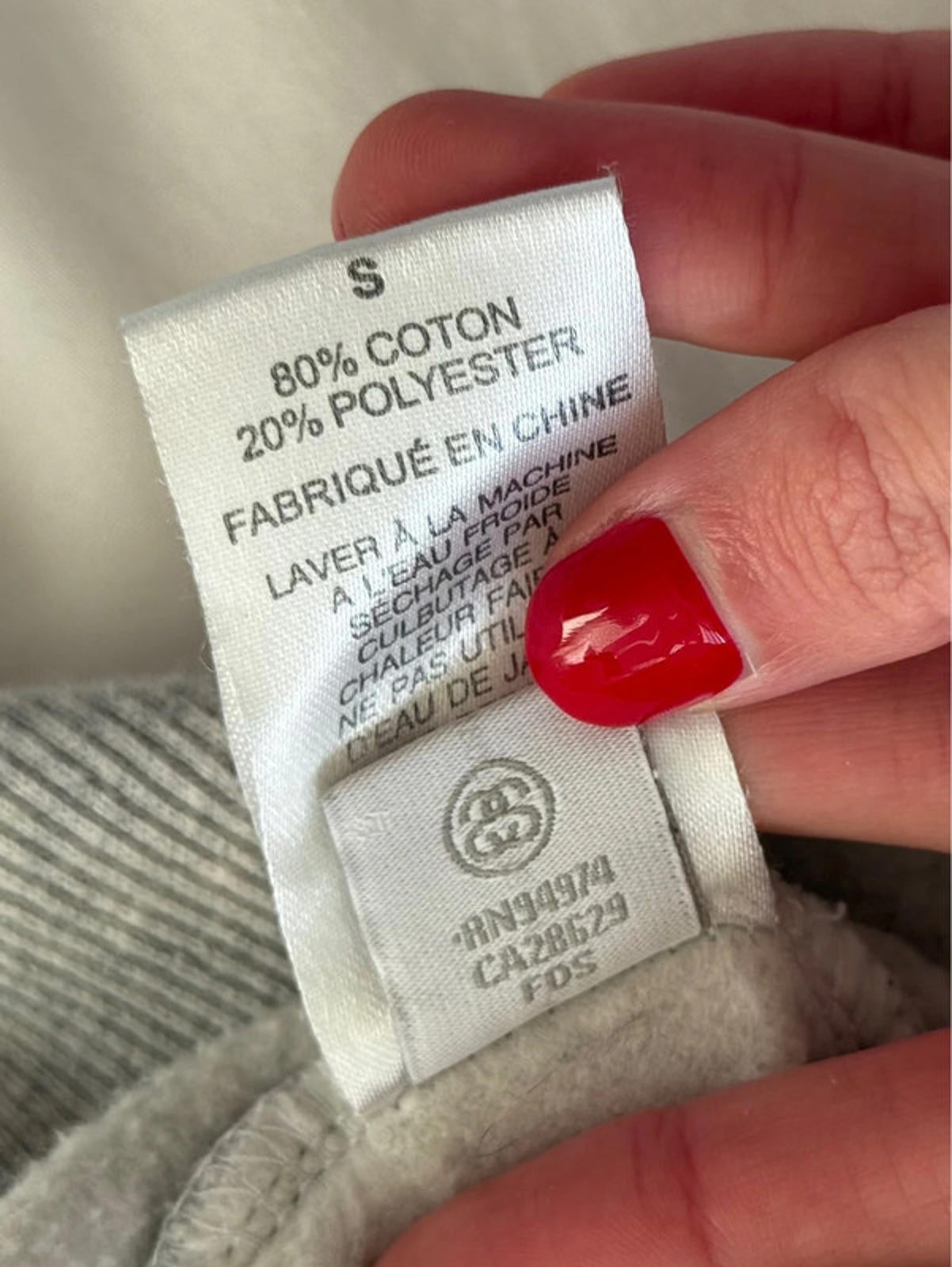 Classic Stüssy grey sweatshirt with the iconic embroidered logo in a deep charcoal tone. Perfect everyday basic — soft fleece inside, relaxed fit and that clean minimal streetwear look that always sells well. Easy to throw on with cargos, jeans or leggings and ideal for uni, errands and layering. Super comfy and timeless.